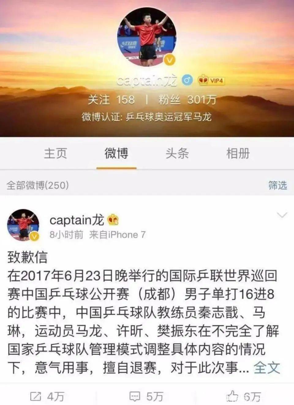 于是这项操作透顶激愤了整体国乒将士,马龙、许昕、张继科、王皓、秦志戬以及那时还年青的樊振东、林高远等多位说明和世界冠军纷纷在交代平台上抒发活气,何况他们还作念出了一件忌惮寰宇的事情:集体罢赛2017年国外乒联世界巡回赛中国站!这即是国乒历史上有名的“623罢赛事件”