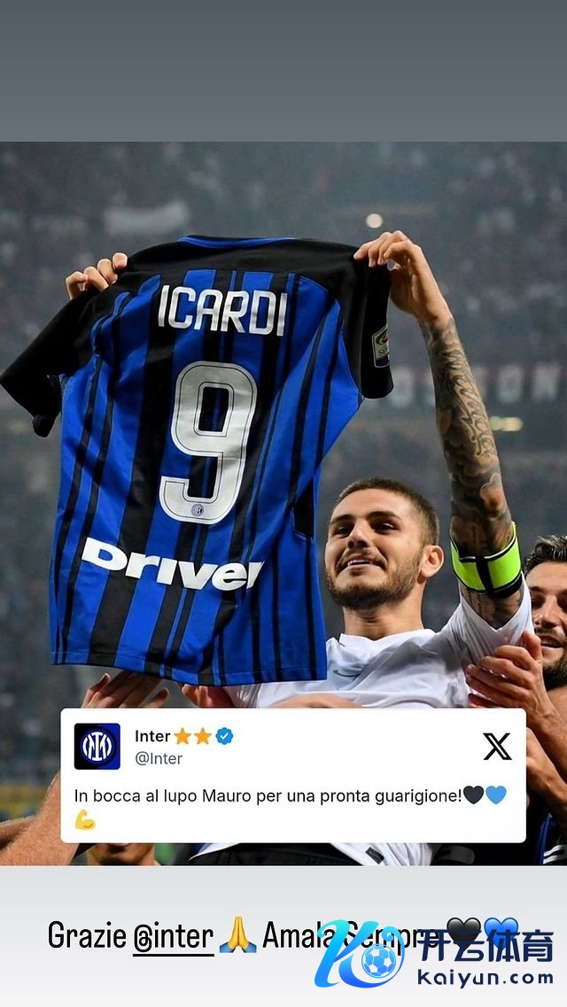 际遇重伤体育赛事直播,老东家国米官推祝贺伊卡尔迪:但愿你八成尽快康复